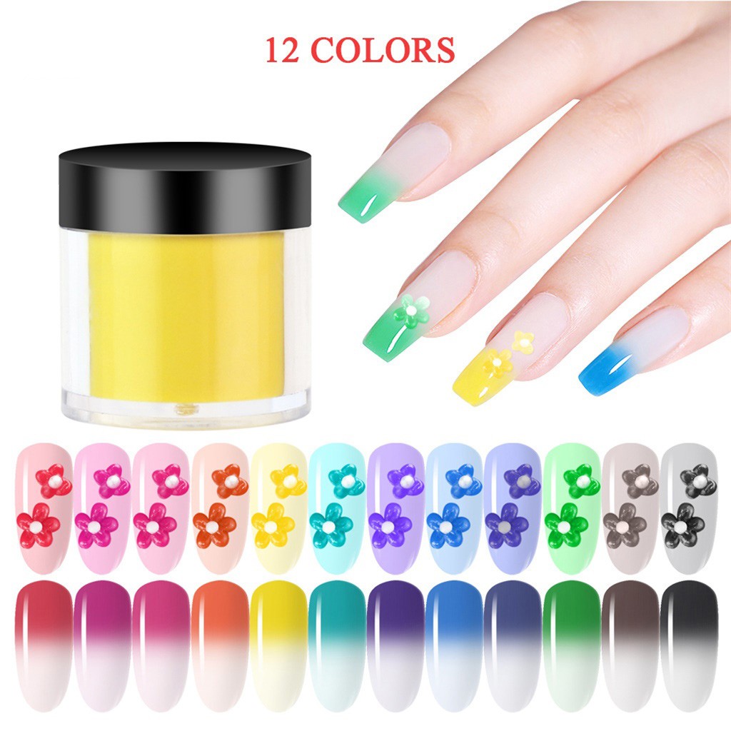 Amazon Com Qimyar Nail Art Gradient Powders Thermochromic Pigment Thermal Color Change Temperature Dust Decorations 12 Color Set Beauty
