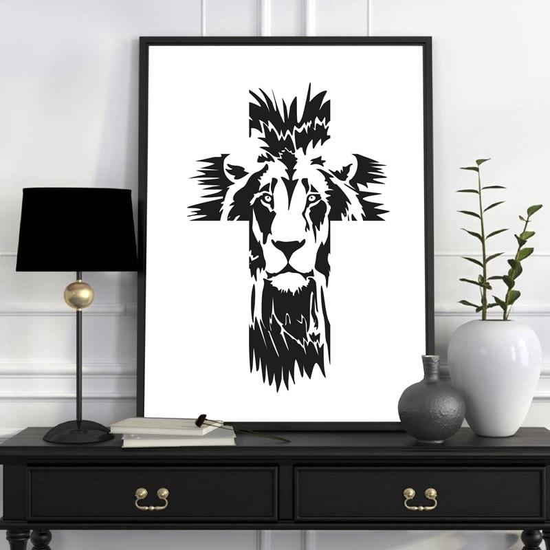 Lion of Judah Cross Print Christian Wall Art Canvas Painting Black and White Picture Jesus Scripture Poster Home Wall Decor | Shopee Malaysia